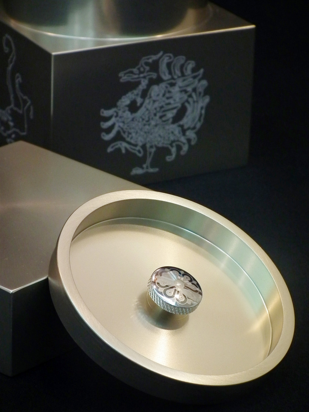 罐身內蓋手取的八方圖騰,世台灣膠彩畫大師鄭敦厚老師設計,鄭老師以傳統民間藝術延展出現代獨特的生活美學,藉八方能量匯聚力量於其中。 高科技的鋁合金材質技術,嚴謹的態度,不斷地研發,使產品達到食品級安全容器檢驗標準。每個細微的點、線、面做到極致的手感,予人歎為觀止。